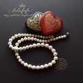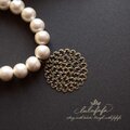 コットンパールの透かしモチーフネックレス~アンティークブラス
