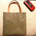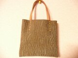 木の肌のような森の緑のようなやさしいフォルムの薄いまちの丈夫なミニバッグです。