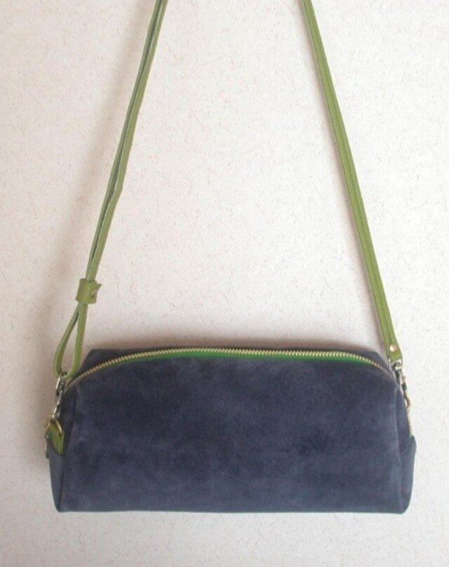 3way長財布ポシェット、スエード×リバティ...ネイビー