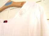 スクエアネックにポイントにレースのお花を胸元につけてます。