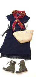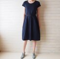 なんにでもあわせ易いシンプルなネイビーワンピース
