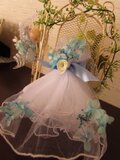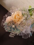 主役の純白ドレスにはシルクリボンやパールのネックレス、ブルーを基調としたプリザーブドフラワーをトッピングしました♪