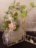 スタンド裏面にもリボンやフラワーがこぼれ出し、ワイヤースタンド全体にもみずみずしいアートグリーンの蔦が絡んで、どこから眺めてもロマンチックな印象です(*^_^*)