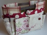 持ち手の通し布は、米国WAVERLY(ウェバリー)の厚手の輸入生地。生成り地にワイン色のチェックがバラを引き立てておしゃれに仕上がりました。