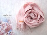 このストールは、桜の枝を煮出し、何日も火入れを重ねて、黄色みを取り除いて