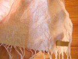 このストールは、桜の枝を煮出し、何日も火入れを重ねて、黄色みを取り除いて