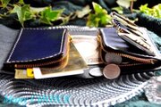 革の宝石ルガトー・二つ折りコインキャッチャー財布(紺)