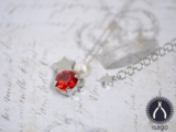 スワロフスキー、コットンパール、メタルパーツによるペンダントになります。