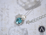 スワロフスキー、コットンパール、メタルパーツによるペンダントになります。