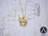 スワロフスキー、コットンパール、メタルパーツによるペンダントになります。