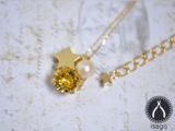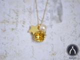 スワロフスキー、コットンパール、メタルパーツによるペンダントになります。