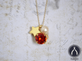 スワロフスキー、コットンパール、メタルパーツによるペンダントになります。