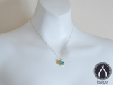 スワロフスキー、コットンパール、メタルパーツによるペンダントになります。