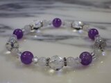 こちらはアメジスト(7φ)+ムーンストーン(5φ)+水晶(8φ 多面カット)+スワロフスキークリスタルビーズ(4mm)を組み合わせたパワーストーンファッションブレスになります。