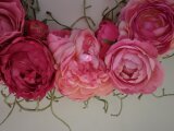 まぶしいくらいにベリーピンクなローズたちをぎゅっとつめこんだリースです。甘くなりすぎないようにグラスブッシュでつくったアウトラインがアクセントになっています。全てアーティフィシャルなので室内外ともに飾れます(直径30㎝(花部分のみ)、直径40㎝(全体)、高さ8㎝)