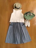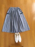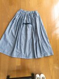 シャンブレー(霜降りのようにした平織り)二重織りガーゼ生地を使用したので、柔らかく軽くたっぷりのギャザーですが、きれいな落ち感のギャザースカートになりました。