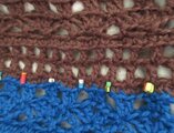 カラフルなアジアンビーズが2色の糸模様の間で踊っています。