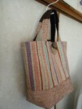 正絹の着物を裂いて、その布を緯糸として織りあげバッグに仕立てました。