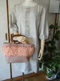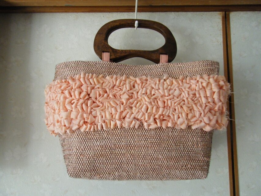 正絹の羽織を裂いて、その布を緯糸として織りあげバッグに仕立てました。