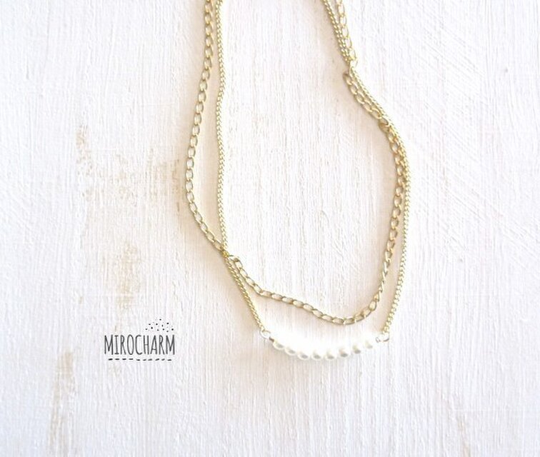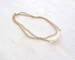ガラスパールのアンクレットです。2連チェーンでシンプルながらさり気なく主張してくれるデザインです。重ね付け用にもどうぞ♪