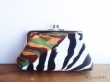 ★【角丸M】ゼブラパッチワークプリントがまぐちポーチ
