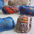 綿麻の布に1点1点手で刺繍をしたブローチです。