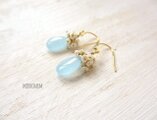 トップにボリュームを持たせたアクアブルーカラーのピアスです。