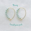 エメラルドグリーンのチェコガラスパールを7個使用したフックタイプのピアスです。