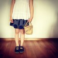 大きな水玉と小さな水玉の組み合わせがどこか懐かしさを漂わせる、ギャザースカート。