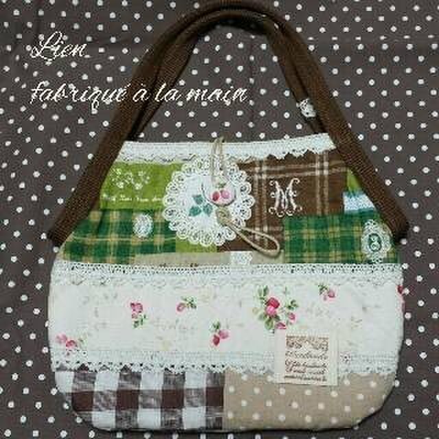 1点もの ミニグラニーバッグ ふっくら パッチワーク グリーン