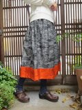 着物リメイク☆黒地紬に緋赤を合わせて…華やか大人スカート75㎝丈