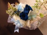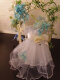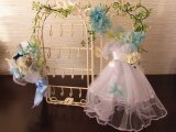 主役の純白ドレスにはシルクリボンやパールのネックレス、ブルーを基調としたプリザーブドフラワーをトッピングしました♪