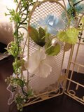 スタンド裏面にもリボンやフラワーがこぼれ出し、ワイヤースタンド全体にもみずみずしいアートグリーンの蔦が絡んで、どこから眺めてもロマンチックな印象です(*^_^*)