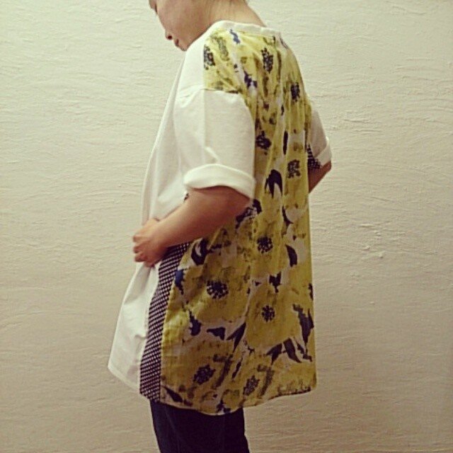 それぞれ表情の違った素材を組み合わせたTシャツは