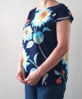 夏の太陽のようなひまわり柄の浴衣反物からTシャツブラウスが出来ました。