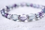 カット加工されてキラキラと高級感のあるフローライトを使用したゴムブレスレットです。