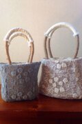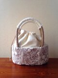 すべて麻紐で編み上げ、レースを施したミニサイズのカゴバッグです。