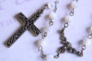 アンティークカラーのパーツでつなぎ、とても雰囲気のよいロザリオです。
