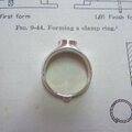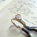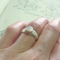 シルバーで作った本体に、ミルキーホワイトの石が引立つように石留め部分のみK10を用いました。リング表面はつや消し調のテクスチャーを施し、内側は磨いております。