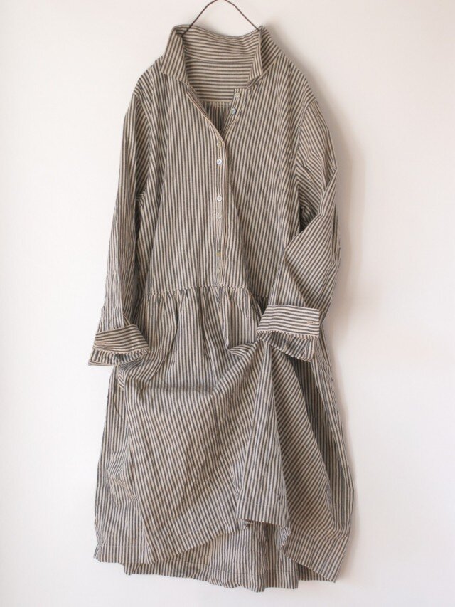 播州織のコットンリネンでお作りします、シャツワンピースです。