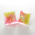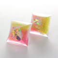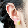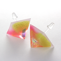 イエロー、ピンク、ホワイトなどを絶妙に配合しクリスタルレジンで閉じ込めたピラミッド型のピアスです。