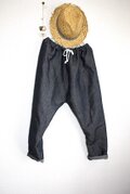 お尻周りはゆったり履けて、ひざ下から細くなっているので綺なラインで履け