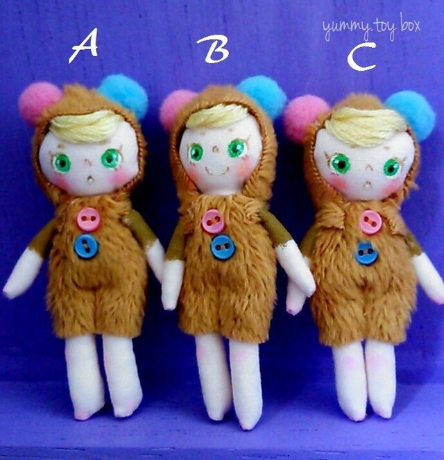 箱に傷の一つもなく届いたお人形は、どの子もとても丁寧に心をこめて作られていて可愛らしくステキでした。一人でもとても可愛いけど、たくさんになるほどyummyさんの世界観が広がってますます可愛いらしいです。大好き! yummyさんiichiさん、どうもありがとうございました!