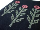 刺繍はミシン刺繍。表地は麻50%、綿50%。裏地は細かなピンクとオフ白のチェック綿生地です。