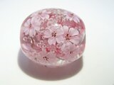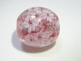 透明とピンクを混ぜた地に、ガラスで作った桜の花を二重に重ねてたくさん咲かせました。