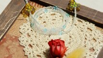 涼しげな透明ビーズにカメさんが泳いでるイメージで水色のビーズを散りばめました。
