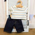 パステルカラーがかわいい!クロスショルダーTシャツ(パステルボーダー)とデニムパンツの2点セット