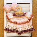 ふんわり優しいイチゴ柄ピンクのパフスリーブワンピースとリボンの2点セット