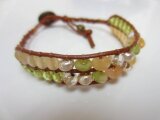 素材(革紐、天然石、ガラスビーズ、貝ボタン、ポリエステル糸、真鍮)