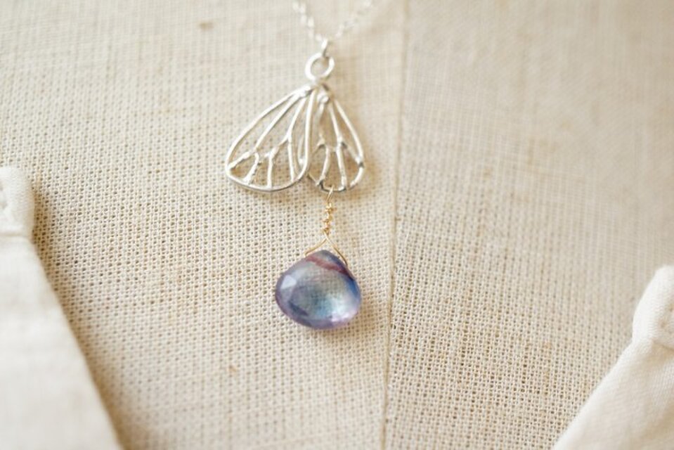 透かし蝶の片羽とカイヤナイトのシルバーのネックレス